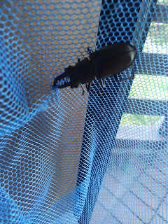 虫取り網を与えて遊ばせていたところ、「勝手に入ってきて逃げない虫がいる~~」と戻ってきました。よく見ると、虫じゃないよ、クワガタ!!都会の子供達はクワガタも知らないのかあ~~